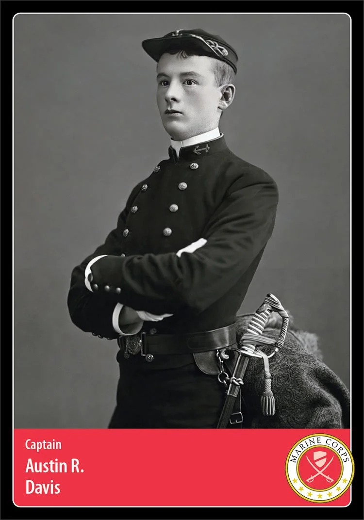 At the age of 17, Georgia native Austin Rockwell Davis was admitted to the United States Naval Academy at Annapolis, Maryland on May 21, 1888. By 1893, Davis served as a Naval Cadet aboard the USS Kearsarge. He enlisted in the United States Marine Corps as a Second Lieutenant on July 1, 1894, and was assigned to Marine Barracks in Washington, D.C.